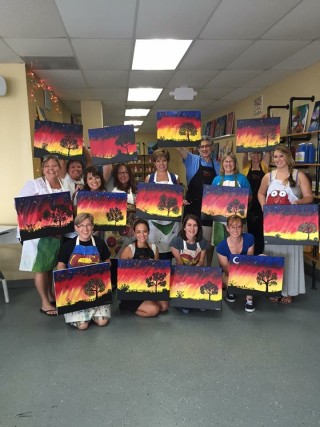 We had a fantastic time at Painting with a Twist. We chose a design of our (group) choice and each of us was presented with a blank canvas, paint and paint brushes, fortunately a great instructor to go with it.